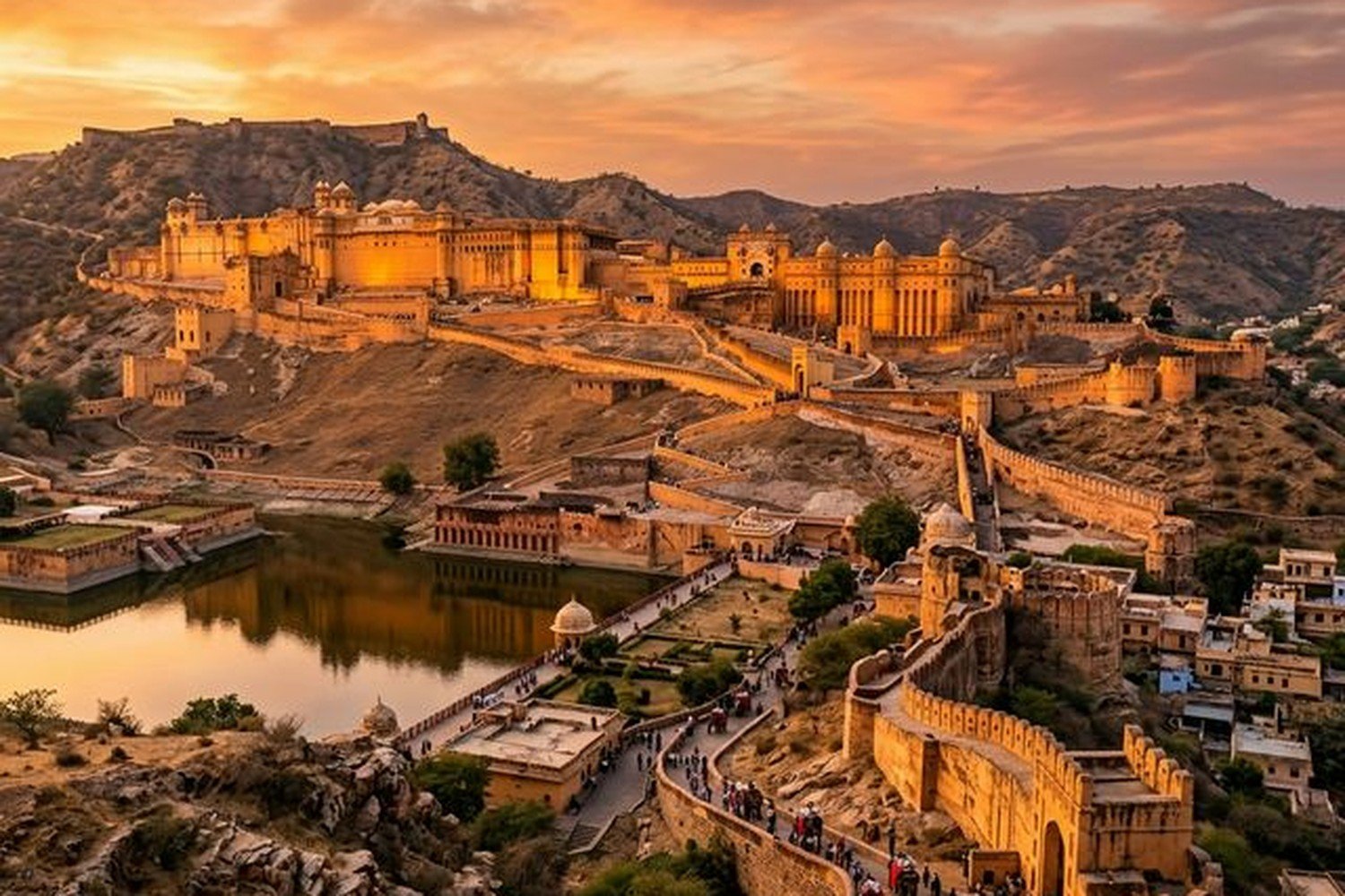 Drive to Agra via the express highway. Upon arrival, visit the sprawling, red-sandstone Agra Fort, a testament to Mughal military might. In the evening, witness the breathtaking sunset at the ultimate monument of love, the Taj Mahal, as the white marble turns a magical hue of soft pink.